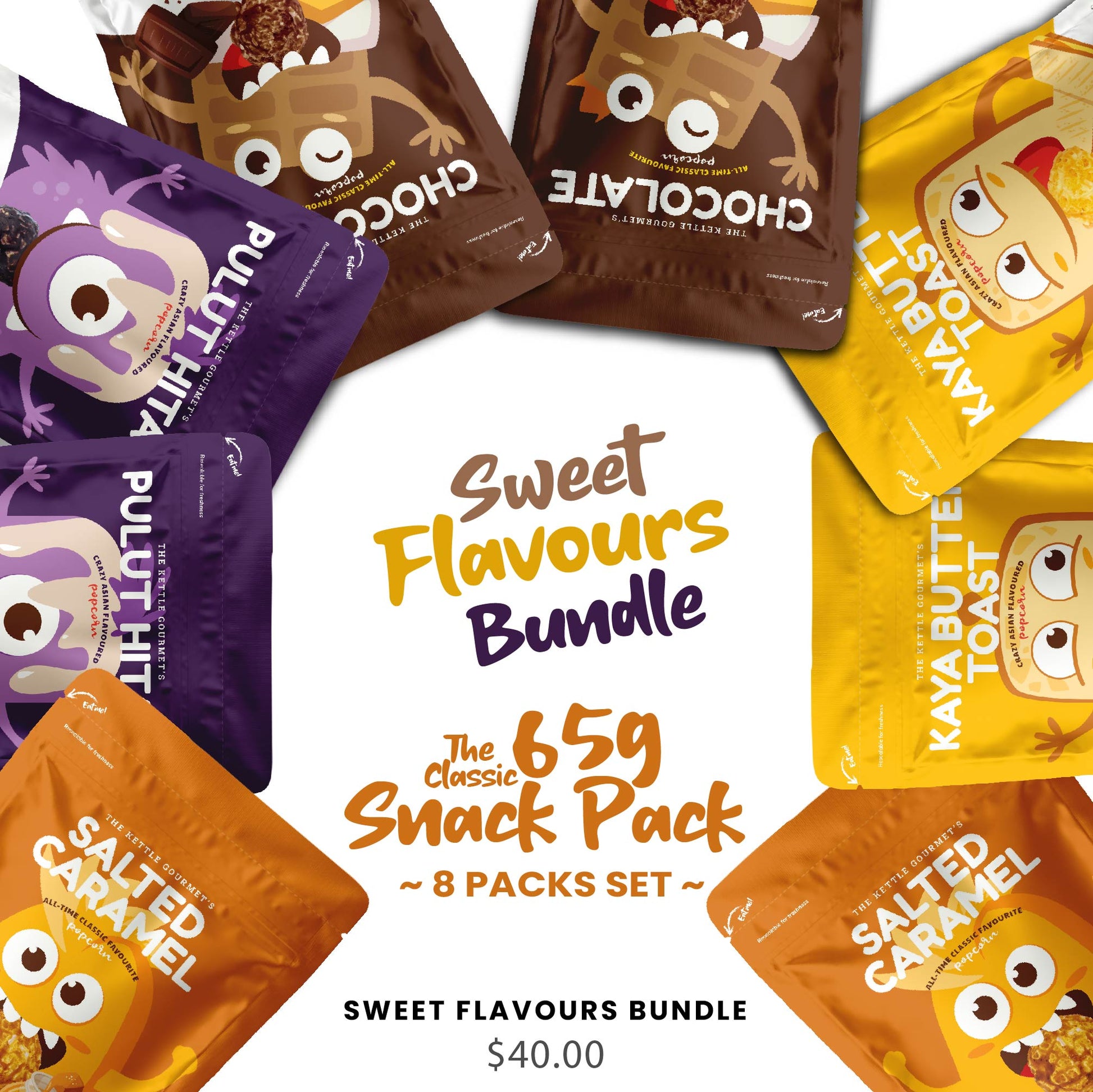 Have a sweet tooth? Our Sweet Flavours bundle of 8 packs satisfies all your sugar cravings. Life's too short to count calories - enjoy the sweetness of our popcorn!